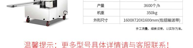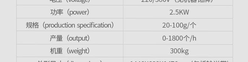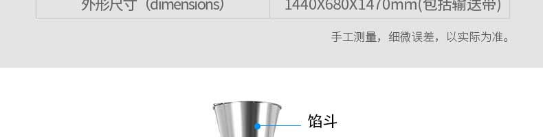 名称好色先生网站30单馅斗好色先生污污 电源220/380V(见机器名牌) 功率2.5kw 产量0-1800个/小时 尺寸1440*680*1420mm(包括输送带) 重量300KG 规格20-100克/个 其他