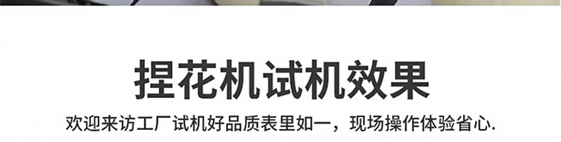 名称XZ-7200捏花机 电源220V 功率0.75KW 产量请咨询销售员 尺寸1355×650×1310mm 重量请咨询销售员 规格 其他