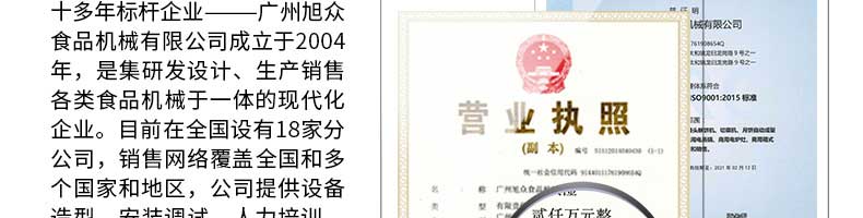 广州好色先生网站食品机械有限公司是一家集科研开发,生产设计,营销服务为一体的现代化生产企业。现代化生产车间,精湛制造技术,所产机械历经市场重重考验,不断赢得海内外客户的赞誉。