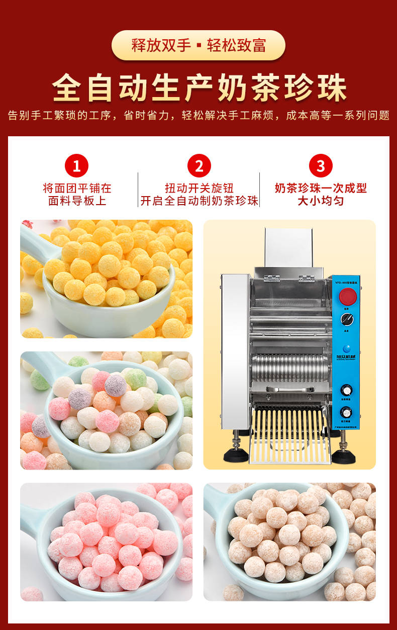 VFD-900珍珠奶茶机,奶茶店、甜品店可用。可生产奶茶珍珠,果蔬圆子,无馅汤圆,水晶汤圆,各种芋圆。不占空间、体积小、重量轻,桌面上的小奶茶珍珠机。告别手工繁琐的工序,省时省力,轻松解决手工麻烦,成本高等一好色先生TV免费下载问题