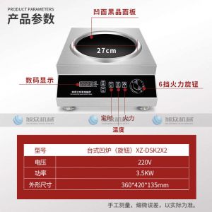 台式凹炉(旋钮)XZ-DSK2X2.,3500W爆炒大火力商用电磁炉。不锈钢材质电磁炉采用加厚不锈钢架构,抗冲击,耐磨耐压,稳定耐用,不易损坏,易于清洁。