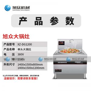 XZ-DG1200-大锅灶,商用大锅灶、猛火效率高。适用于酒店/食堂/工地炒菜,均匀翻炒,快速出菜工程可定制。劲爆翻炒快速出菜轻松解决百人用餐,人多也不怕。八档磁控轻松控温根据需求调节,操作简单,效率更出众。