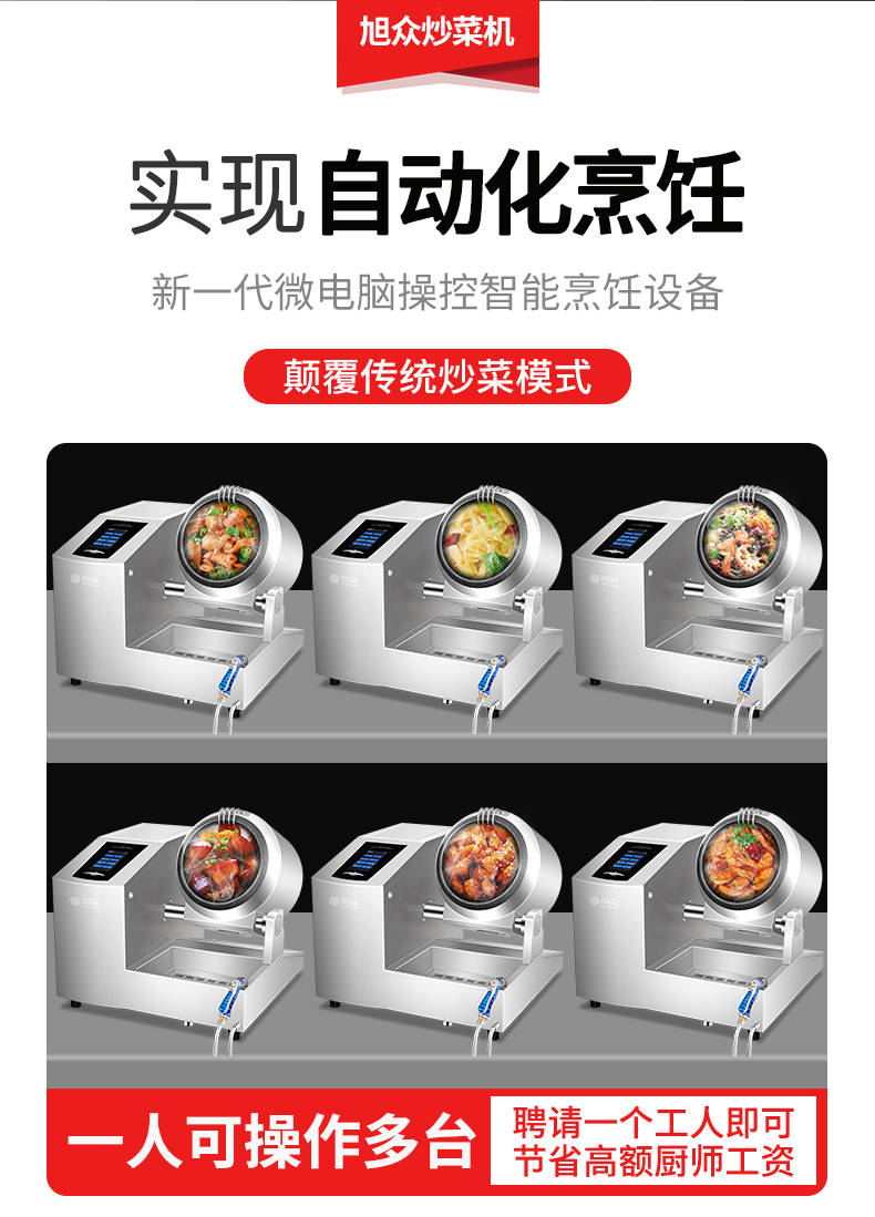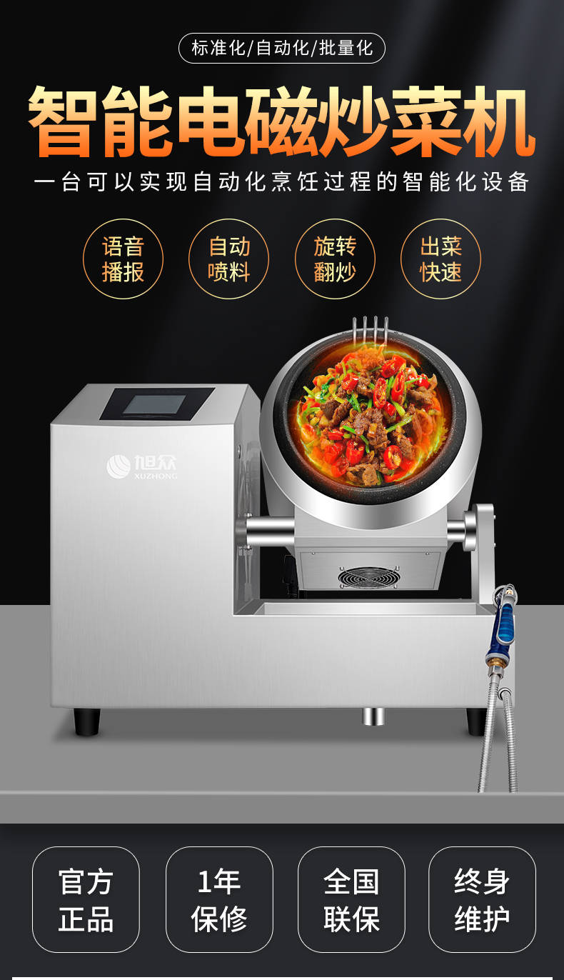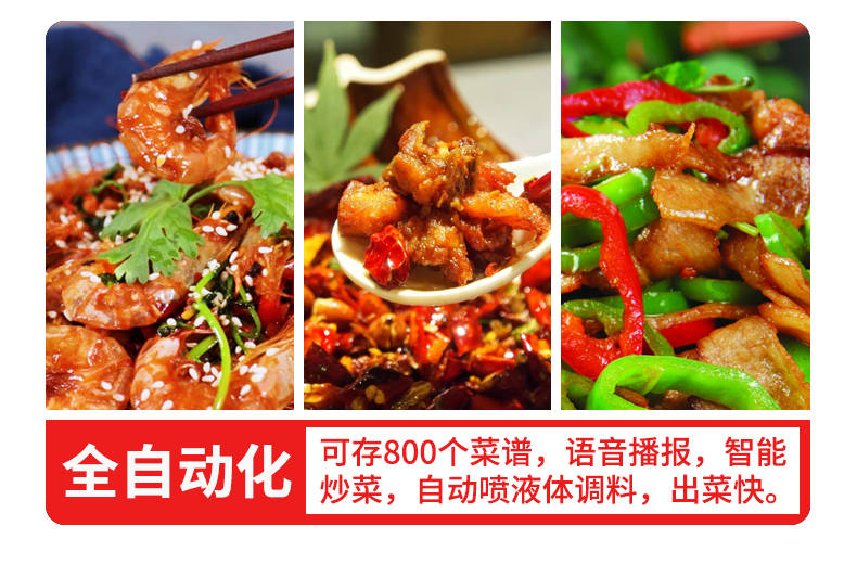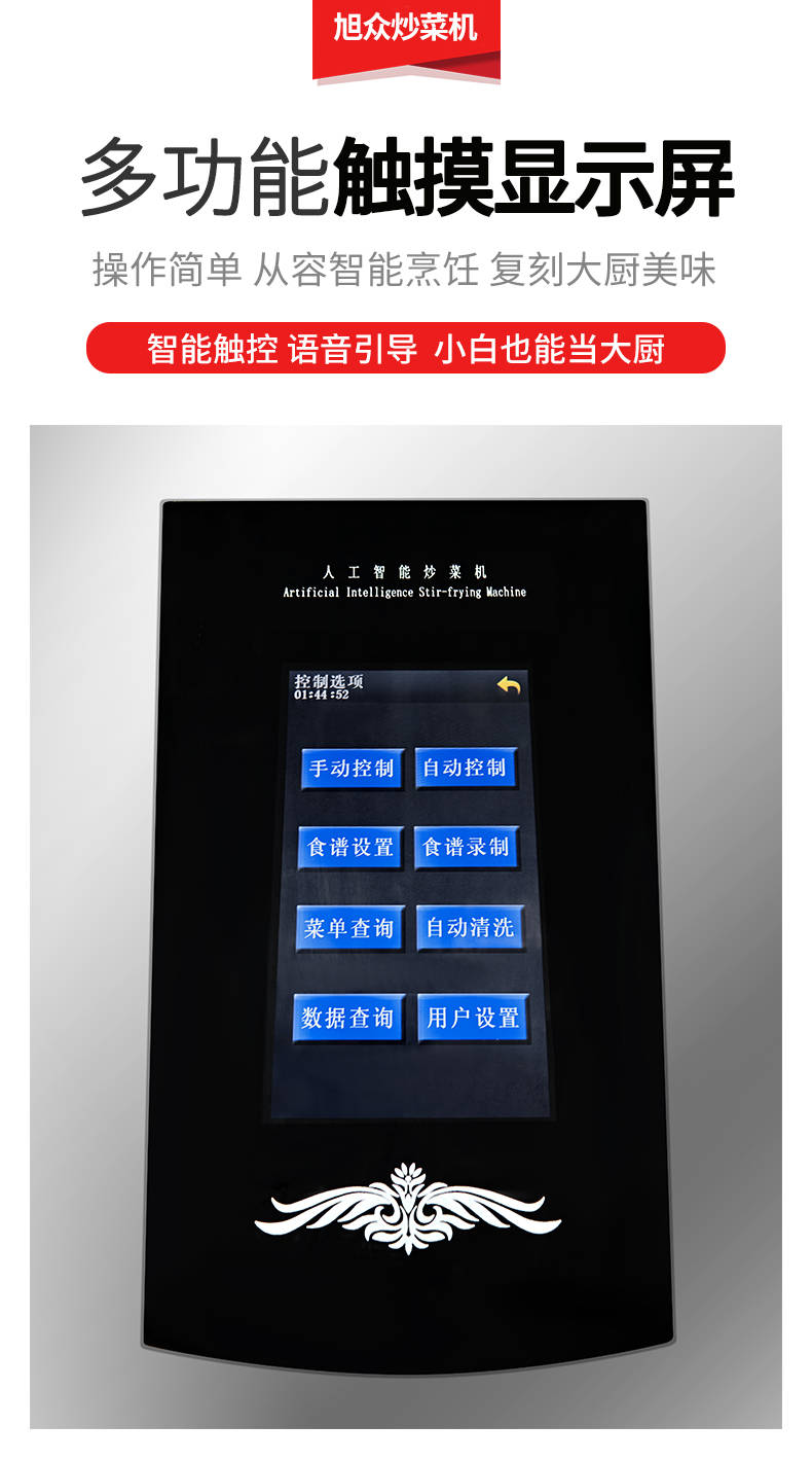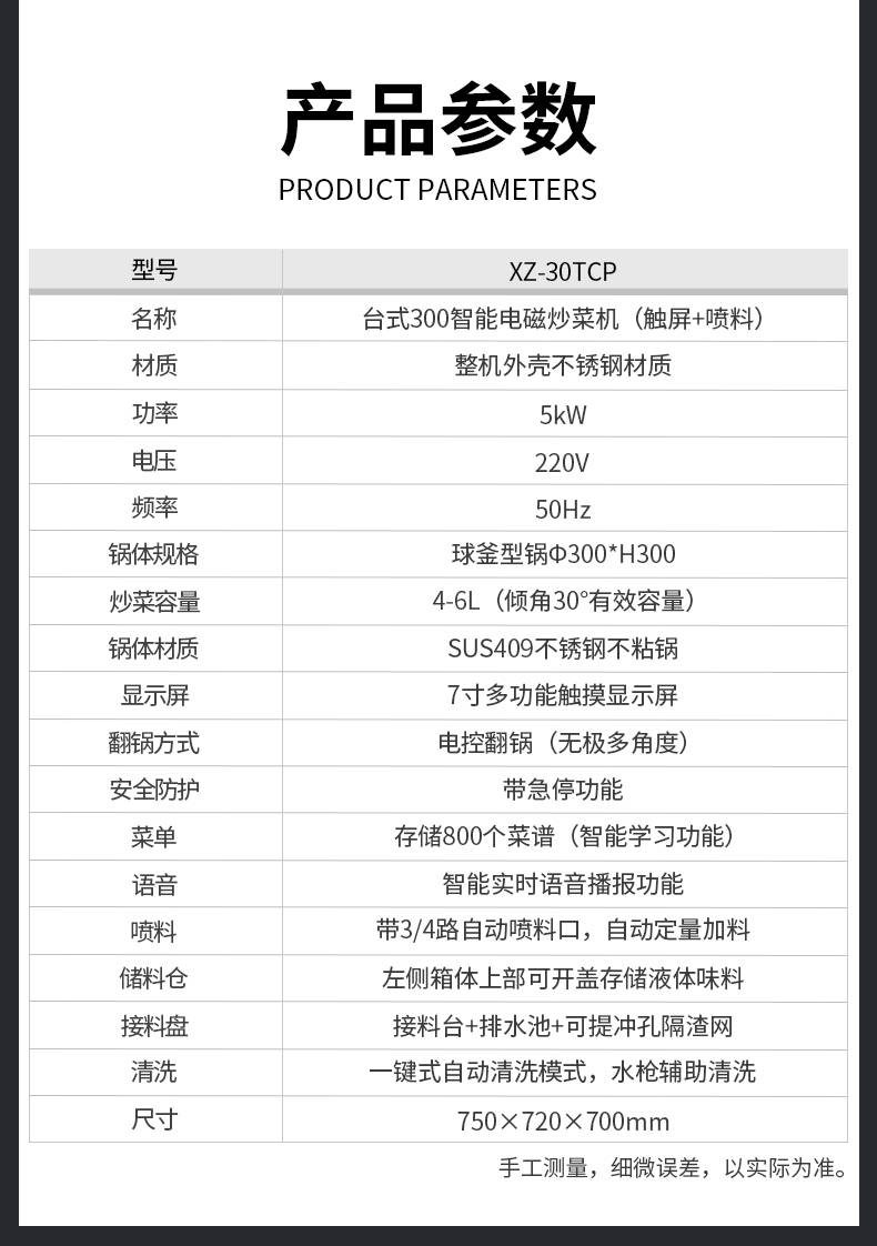 XZ-30TCP台式300智能电磁炒菜机(触屏+喷料),可以实现自动化烹饪过程的智能化设备,语音播报、自动喷料、旋转翻炒、快速出菜。实现自动化烹饪,新一代微电脑操控智能烹饪设备、颠覆传统炒菜模式。5000W猛火爆炒美食更鲜香