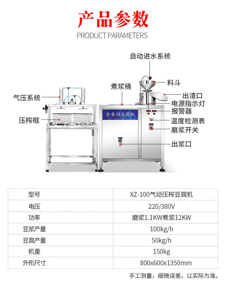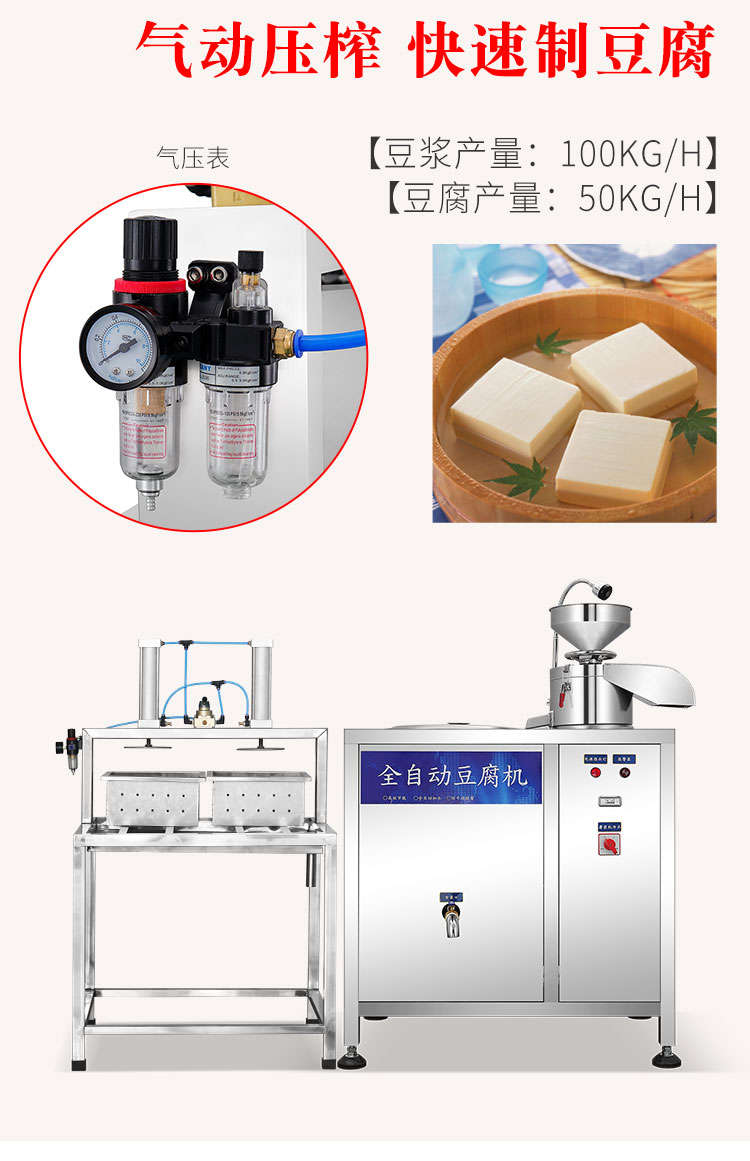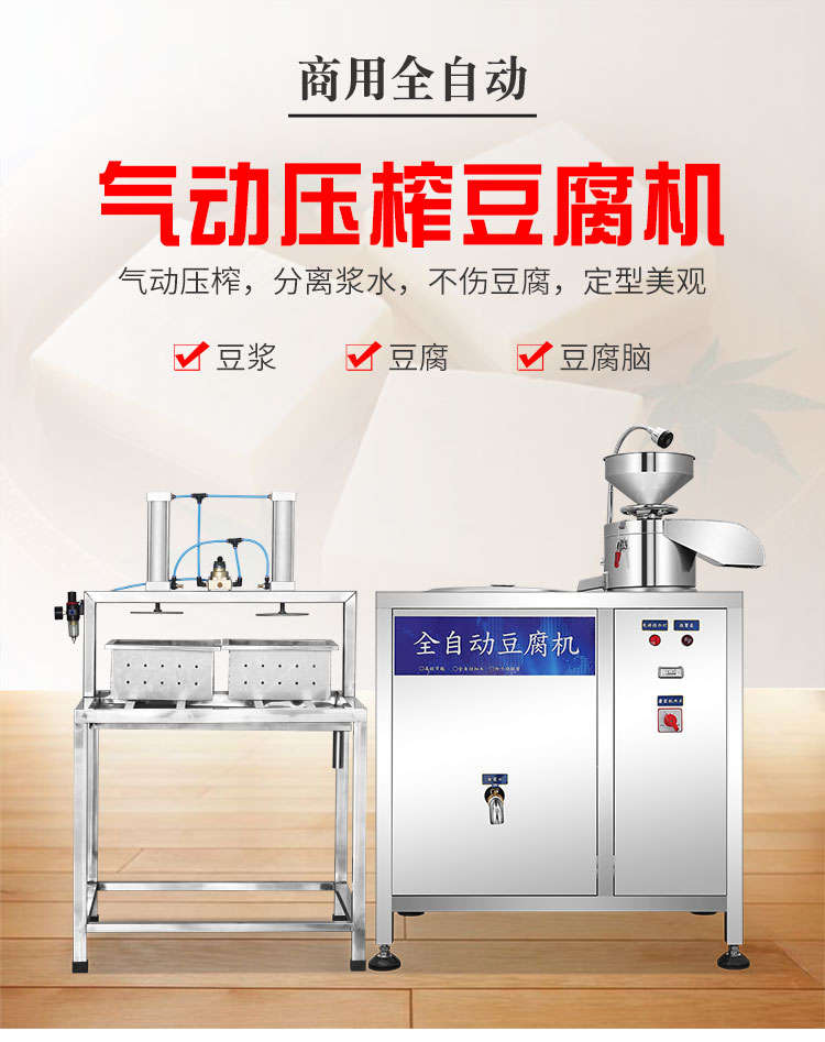 XZ-100型全自动豆腐机,商用全自动气动压榨豆腐机气动压榨,分离浆水,不伤豆腐,定型美观。