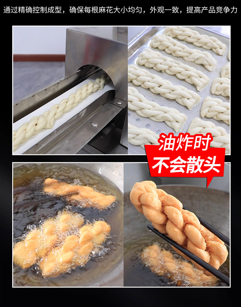 XZ-MH-200麻花机,技术支持、赠送配方、支持定制,1小时加工60斤麻花。切段均勺、且不粘面,麻花长短可调。可通过调节切刀时间、控制麻花的长度。通过精确控制成型,确保每根麻花大小均匀,外观一致,提高产品竞争力。