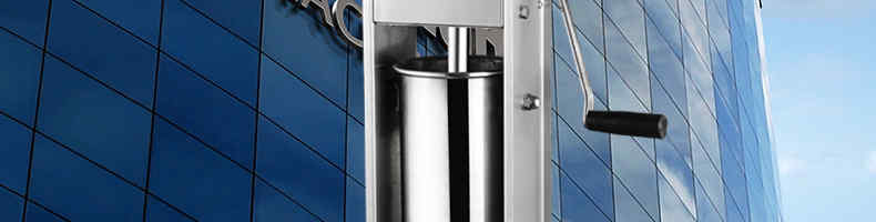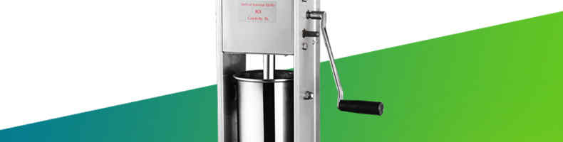 手摇灌肠机,产品接触食物的部位全部采用不锈钢材料,卫生、安全。立式设计,外形美观、大方。料筒拆装快速,清洗方便。全新的齿轮系统,使送料推力,快速、轻便地释放提升推进活塞,工作效率高。以灌肠机是家用制作香肠或食堂、餐馆、酒店专业制作香肠的理想产品。