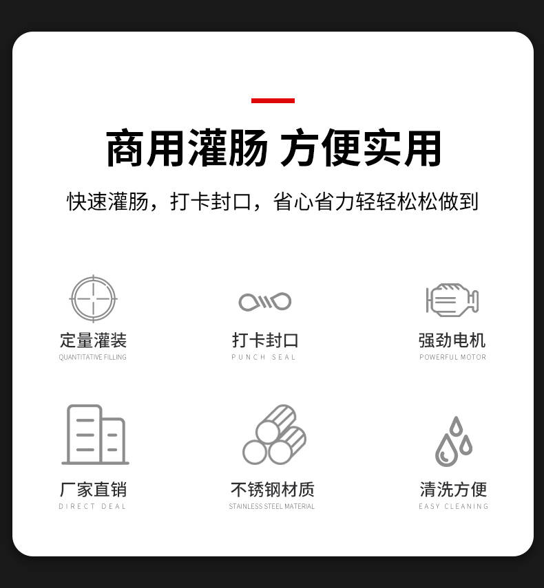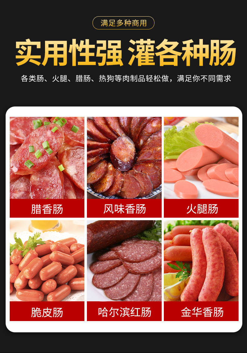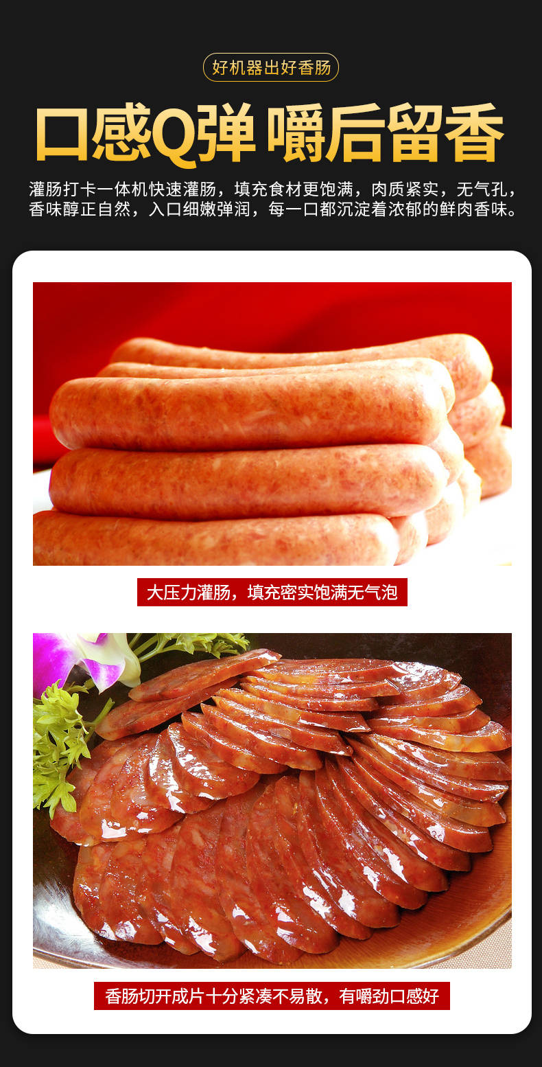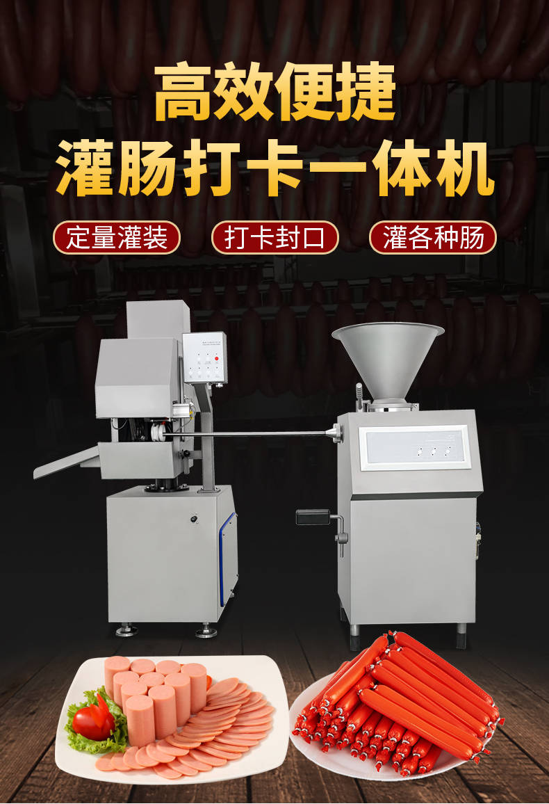 XZ-I型自动定量灌肠机,使用优质不锈钢制造,符合食品机械的要求,只需1人操作,特别适合中小型肉食加工厂使用,以各种畜禽类肉糜为原料的香肠、火腿肠、热狗等天然肠衣、蛋白肠衣、烟熏肠衣等制品,可以灌制定重量单肠,也可连续灌制长肠。