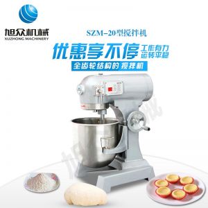 SZM-20型四功能搅拌机,可用于搅拌奶油、蛋糕液、馅料及和制面团等操作。打蛋搅拌机等作搅拌食料、揉和面团之用,是生产优质糕点的理想设备,适用于酒店、饭店、学校部门、面包屋以及食品厂家。