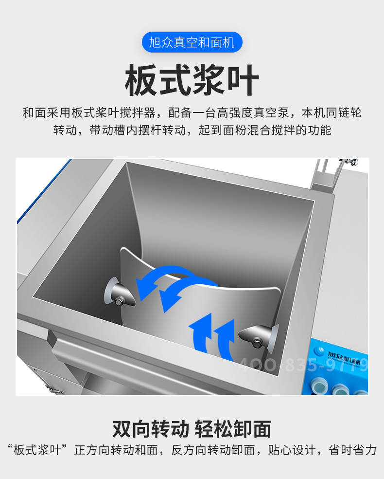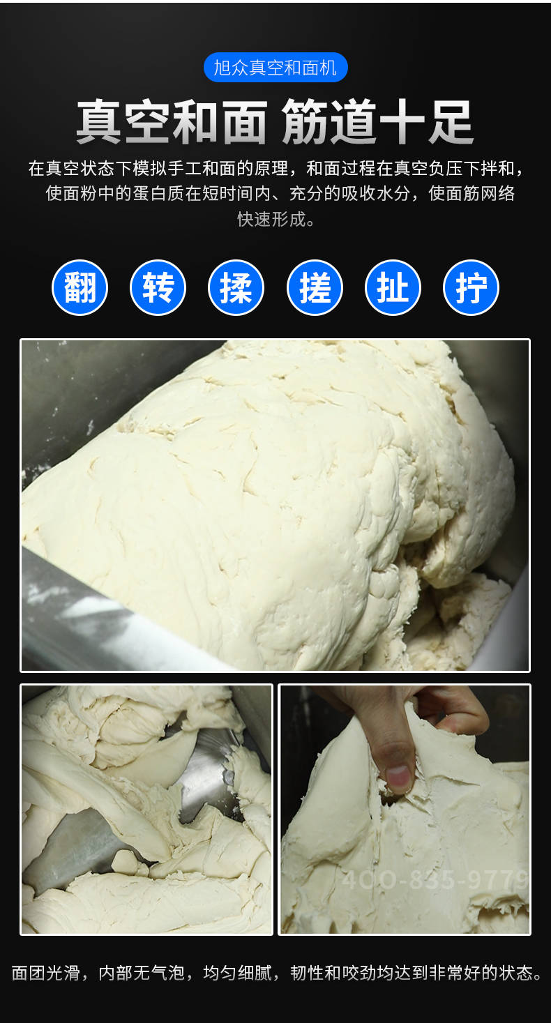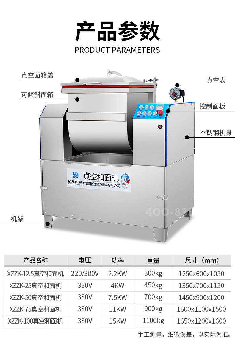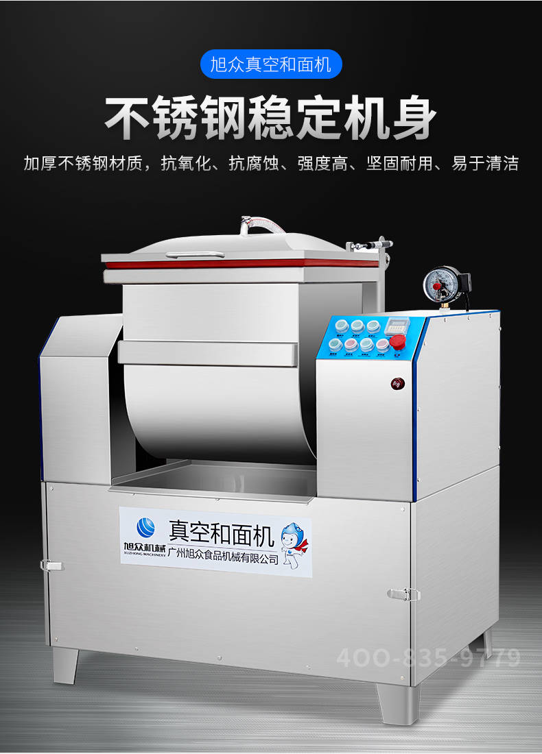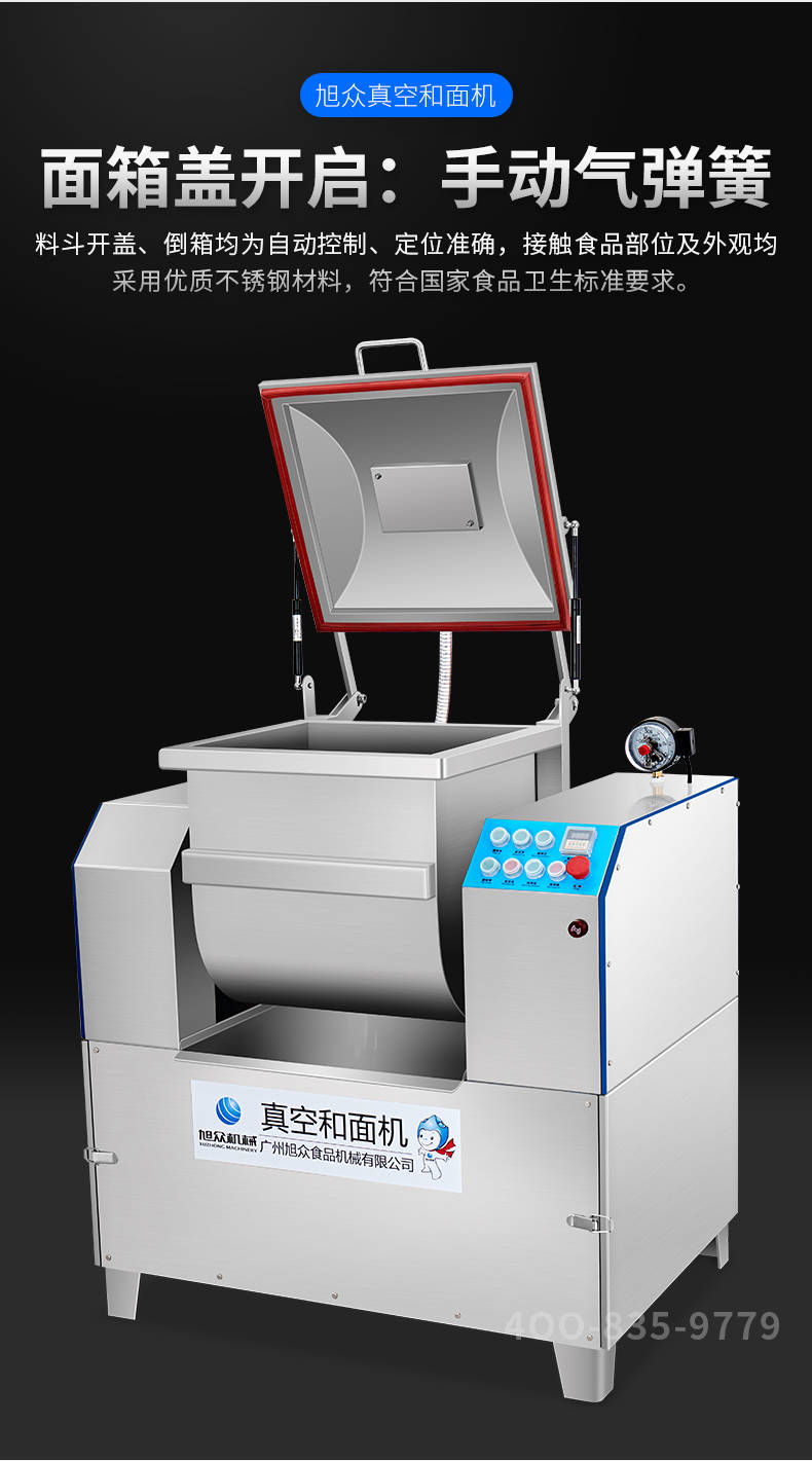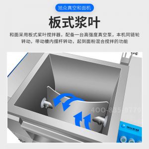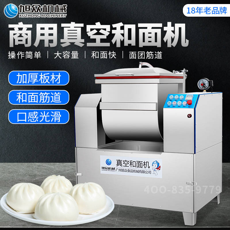 XZZK-25真空和面机,商用真空和面机,操作简单、大容量、和面快、面团筋道。在真空状态下模拟手工和面的原理,和面过程在真空负压下拌和,使面粉中的蛋白质在短时间内、充分的吸收水分,使面筋网络快速形成。