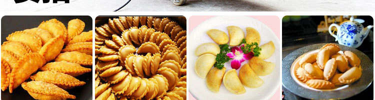 WS-2003 型自动成型酥角机(油饺机),适用于制作酥角、油饺,可包的馅有:花生、椰蓉、白糖等。适合多种面粉材料、并且成型封口美观牢固。小模约47mm,大模约57mm随机标配一套模具。购机赠送工艺配方。