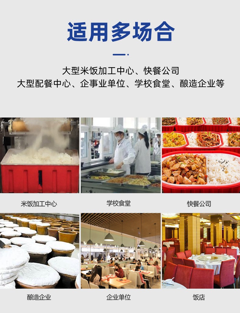 全自动蒸汽型米饭好色先生APP在线观看,全电脑控制系统,从大米储存到焖饭的全过程采用电脑控制,自动化作业,降低劳动强度。实现全自动生产,多功能,一机多用,可以用于在蒸制各种食物实现全自动生产,无需人工服务。