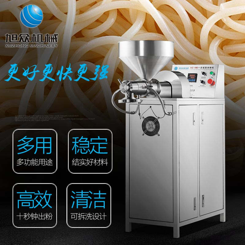 XZ-100C一步成型米粉机,一机多用:米粉机广泛适用于所有含淀粉类粮食作物。大米、玉米、荞麦、红薯、土豆、绿豆、豌豆等都可以生产,它不仅能生产米粉、米粉、朝鲜冷面、牛筋面、年糕、玉米面条、各种杂粮粉丝、各种面条、杂粮面条、彩色面条等多种面食品