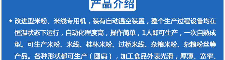 SZ-400多功能米粉机,生产多样性可生产米粉、米线、粉丝、粉条、、年糕、玉米面条、各种杂粮粉丝、各种面条、杂粮面条、彩色面条以及以红薯、玉米、大豆、蚕豆等制成淀粉为原料的等多种食品而且每种食品厚薄、粗细等规格可根据需要任意调整。
