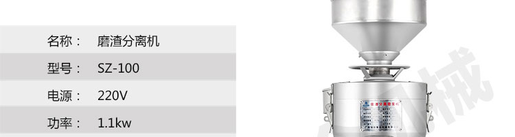 SZ-100-磨渣分离机好色先生TV免费下载,适用于把豆制品磨碎分离浆和渣;适用于豆制品厂、饮食服务业、食堂、饭店及个体商户使用。