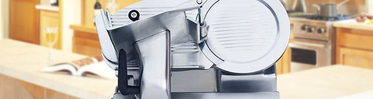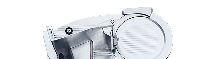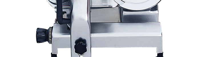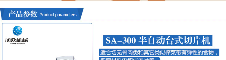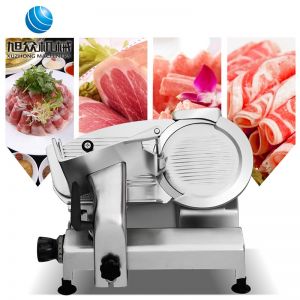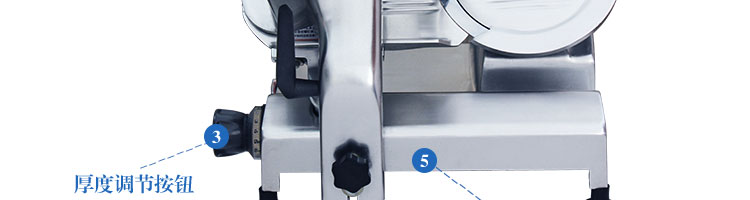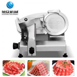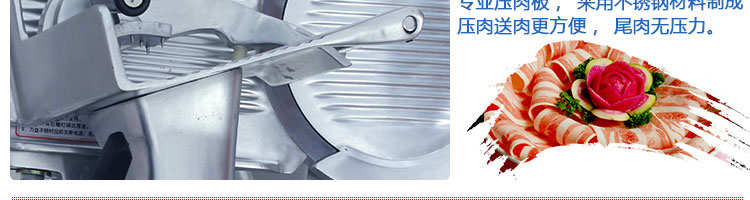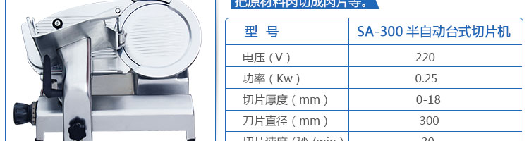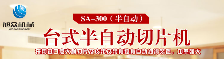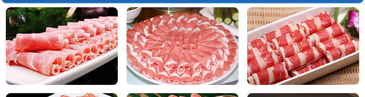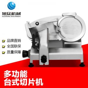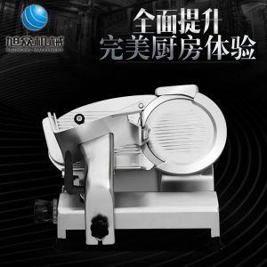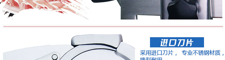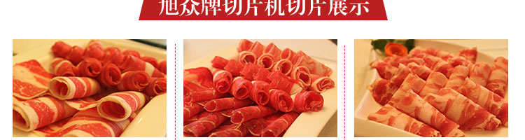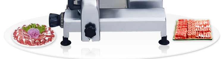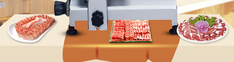 台式半自动切片机,适合切无骨肉类和其他类似榨菜带有弹性的食物,把原材料肉切成肉片,并可自动成卷状。可切牛肉片、羊肉片等