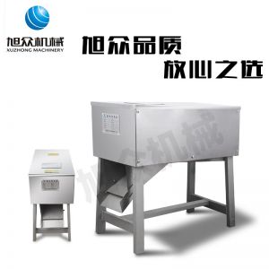 SX300B 卧式切肉机,卧式切肉机均采用双滚刀结构,有卧式和立式两种型式。各种款式切肉机原动力和刀梳、切肉部分的原理,结构大致相同,都具有结构紧凑,外形美观、操作方便、效率高、耗电小、清洁保养容易、安全卫生、切肉效果好等优点。