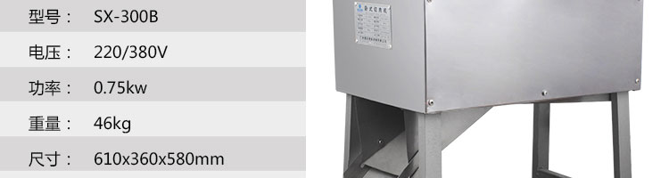 名称SX300B 卧式切肉机 电源220/380V 功率0.75kw 产量 尺寸610*360*580mm 重量46kg 规格 其他