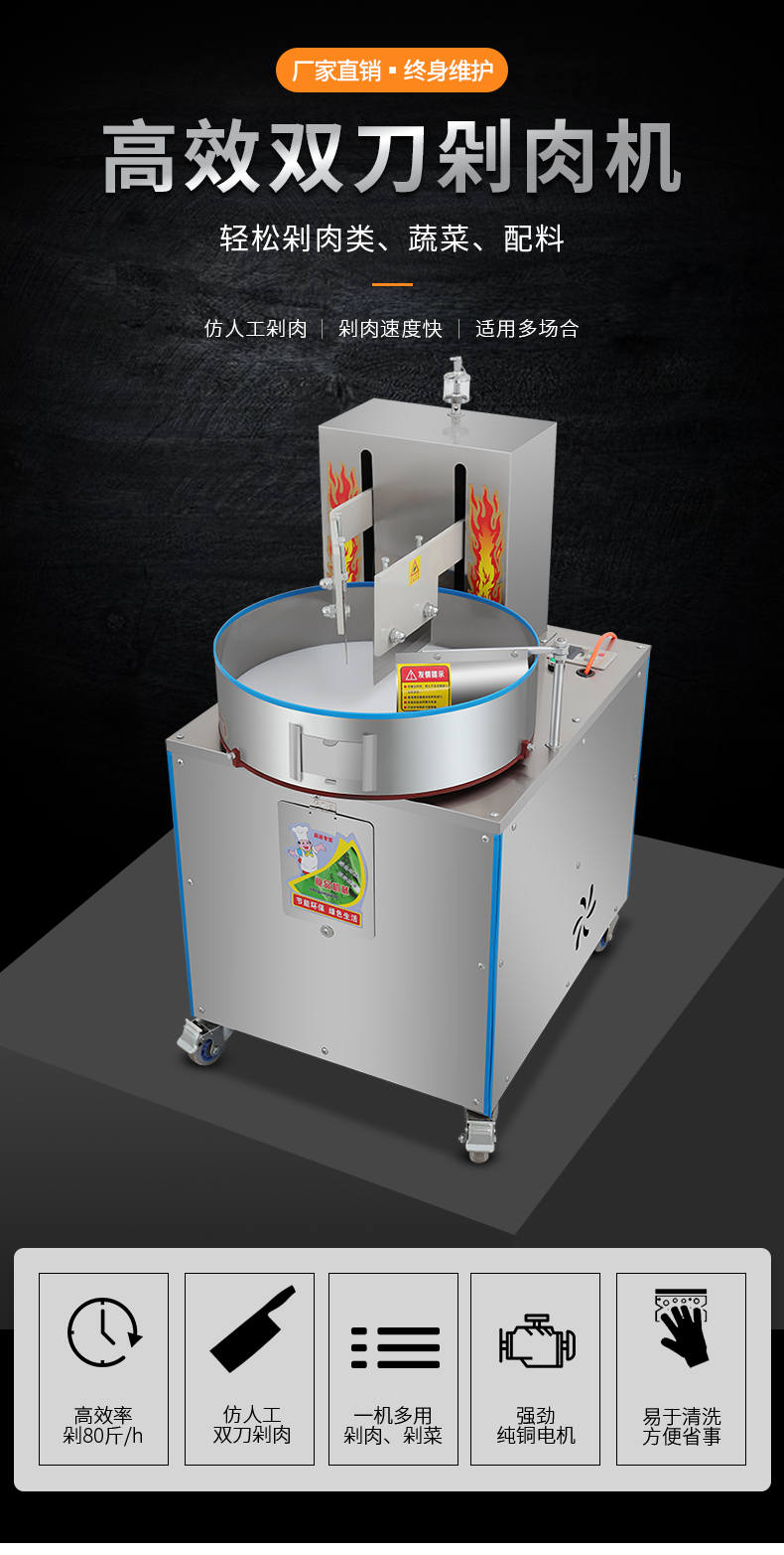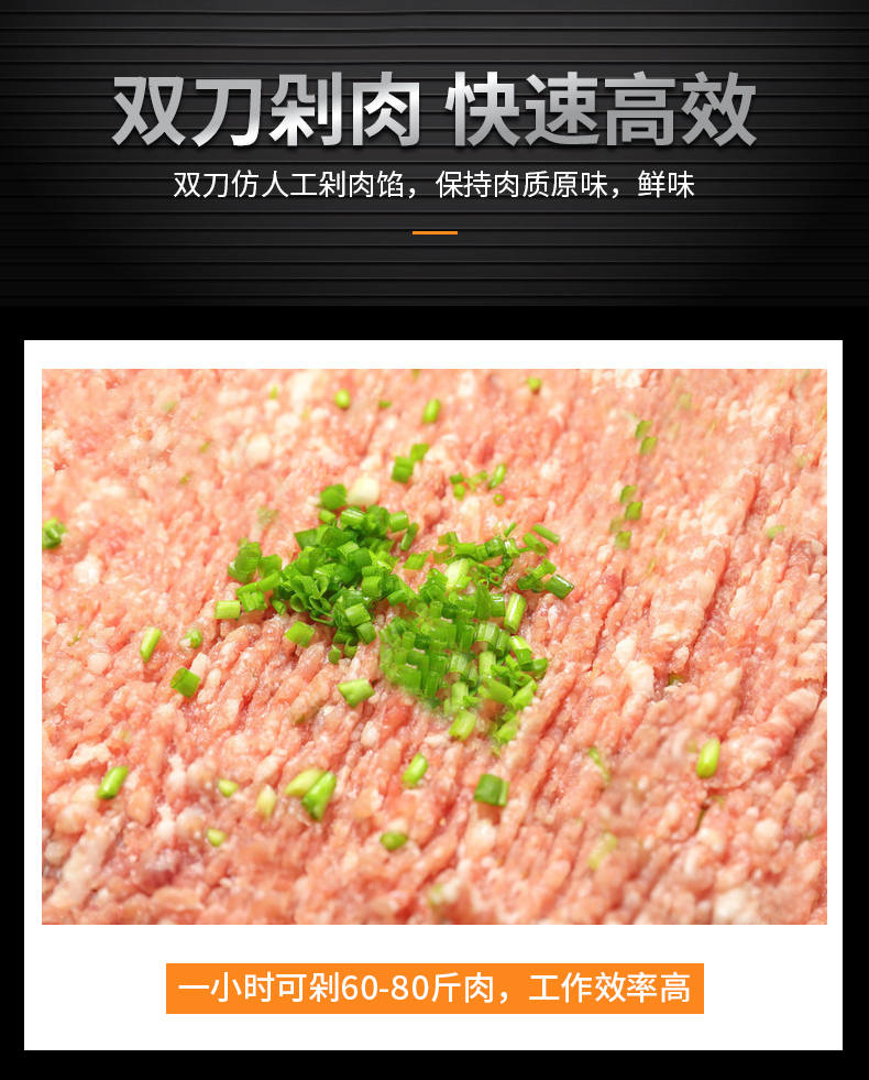 XZ-FL30剁肉机,高效双万剁肉机,轻松剁肉类、蔬菜、配料。仿人工剁肉、剁肉速度快、适用多场合。轻松搞定各种食材好色先生网站双刀剁肉机,让你告别人工,高效剁各种食材。不锈钢稳定机身加厚不锈钢板材,坚固耐用,不易生锈,延长使用寿命
