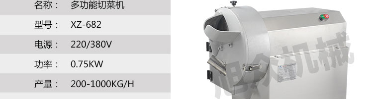 XZ-682多功能切菜机,设备可将根茎类蔬菜:如马铃薯、蕃薯、黄瓜、竹笋、洋葱、茄子等切片、条、丁。设计周到,结构合理,机器寿命长。