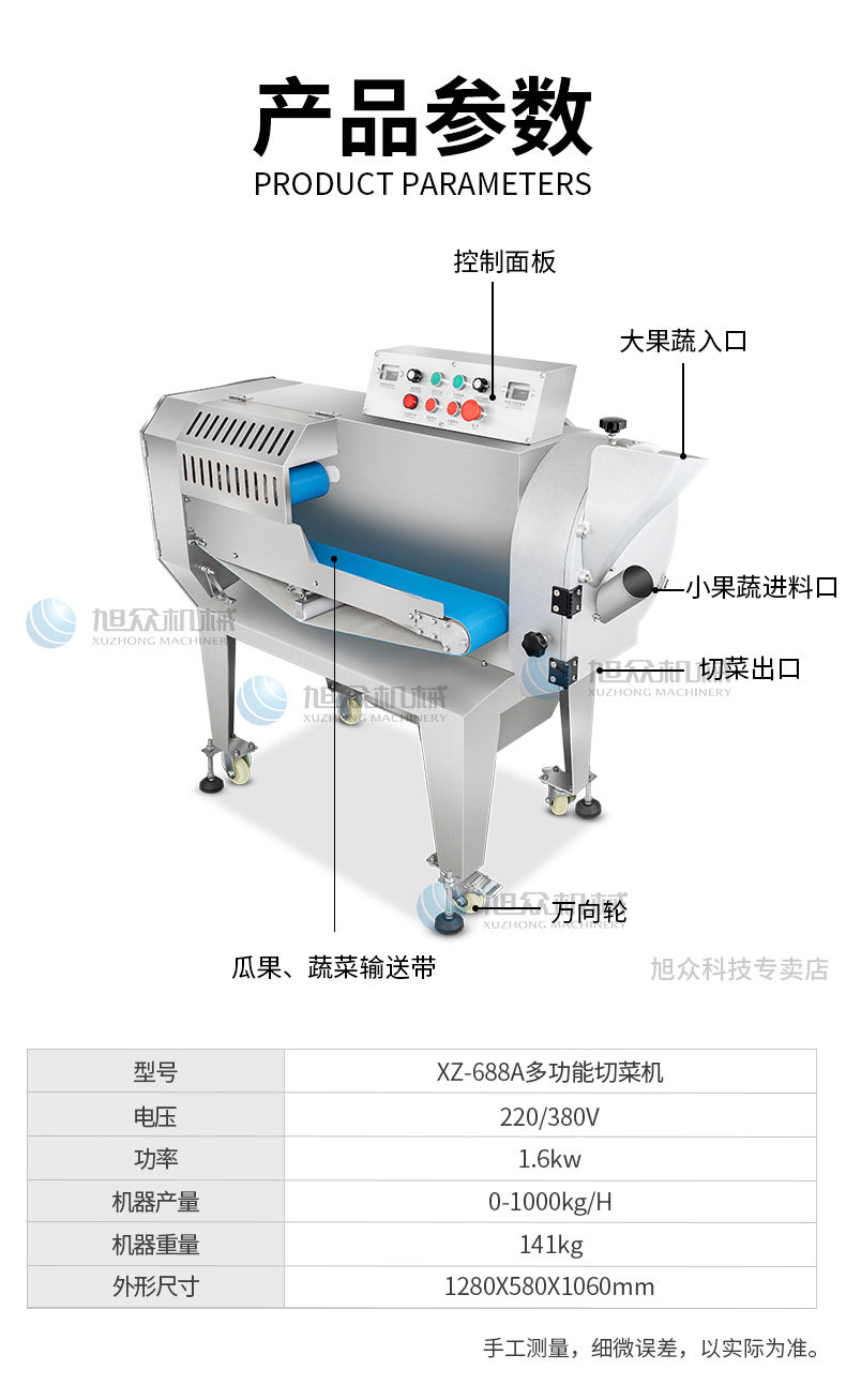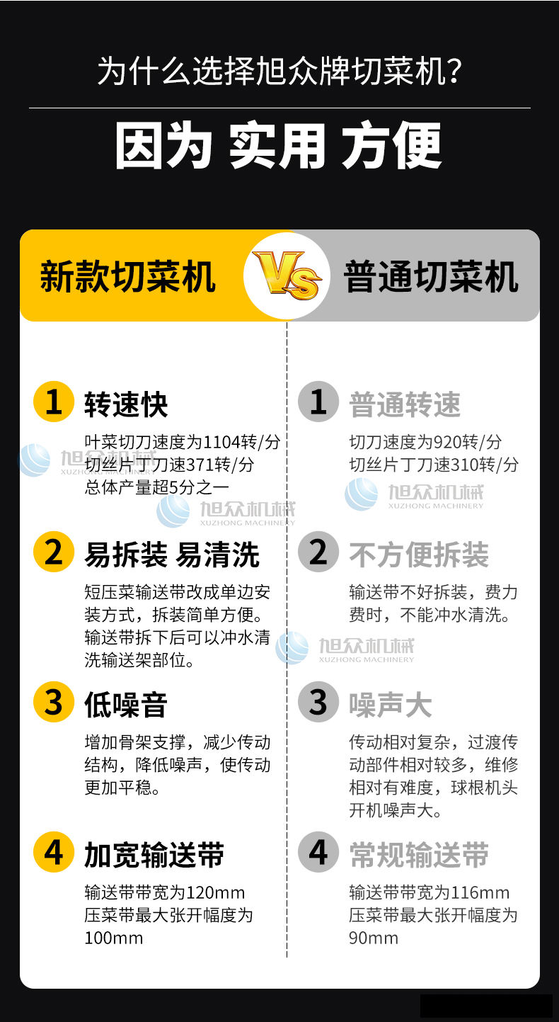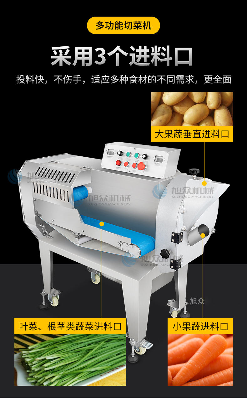 XZ-688A切菜机,占地使用面积小机器小,省空间,适合饭店、食堂、酒店等使用。省事省力省人工1小时加工2000斤叶菜切刀速度为1104转/分,切丝、切片、切丁、刀速371转/分。