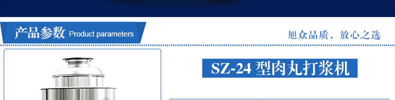 SZ-24型高速肉丸打浆机,高速肉丸打浆机选用不锈钢,生产过程中改善了肉质脂肪纤维,生产出的丸子外表光滑细腻、低脂、口感爽脆、弹性好、韧性好,是潮州肉丸的专用打浆机。