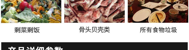 名称商用910-厨房垃圾处理器 电源380V 功率9.0kw 产量 尺寸 重量 规格 其他处理模式:直排式,单次投入范围1-10kg,处理细度浆糊状