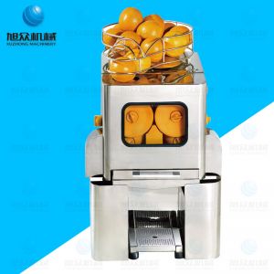 2000E-5小型自动榨橙汁机,是天然绿色饮品的生产机器,该鲜橙榨汁机所榨出的橙汁是现榨的原汁,采取挤压式,鲜橙经消毒、漂洗后,直接进入机器 ,自动剥皮、榨汁、过滤,现榨现饮,橙汁中无皮、无丝 、无籽、无渣。
