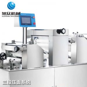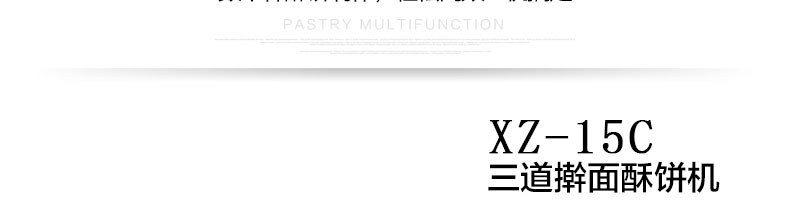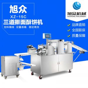 xz-15c三道擀面酥饼机,仿手工制作面食产品的机型,占地面积小,重量轻,运用擀面杖压面和打击面团,以保证高面筋性和面带的密度,并综合考虑面食的口感而研发。可生产东北糖酥饼,东北大香酥饼,苏式月饼,芝麻饼,鲜花饼,老婆饼。购机免费提供工艺技术