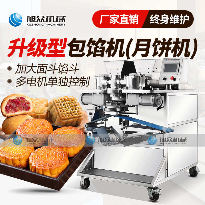 XZ-68月饼包馅机,一次成型大小均匀,操作简单,可生产豆沙、五仁、莲蓉等馅料的包馅类产品制品皮馅比例可调,大小统