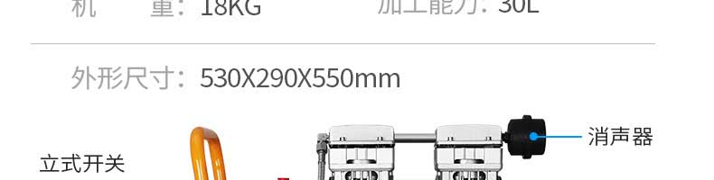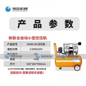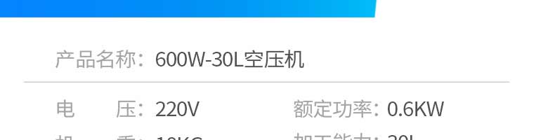 名称空压机 电源220v 功率0.6kw 产量30l 尺寸530*290*550mm 重量18kg 规格 其他
