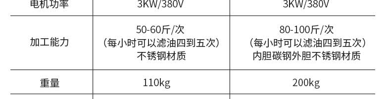 名称离心滤油机 电源 功率3kw/380V 产量50-60斤/次,80-100斤/次 尺寸800×800×900mm、900×700×1000mm 重量110KG、200KG 规格 其他