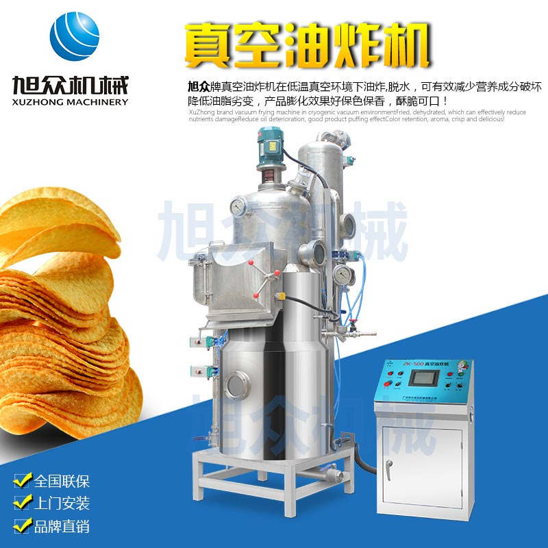 zk-500真空油炸机,应用于水果类、蔬菜类、干果类、水产品机畜禽肉类等。低温真空油炸,食品脆而不腻,可贮性能良好。