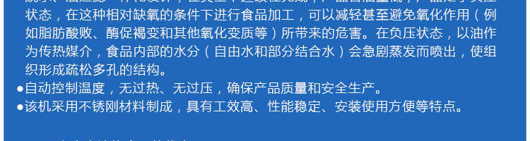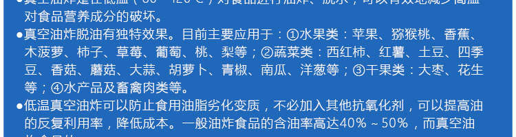 zk-1200双罐低温真空油炸机,适用于水果类、蔬菜类、干果类、水产品机畜禽肉类等。油炸食品不易褪色、褐色,可以保持原料本身的颜色